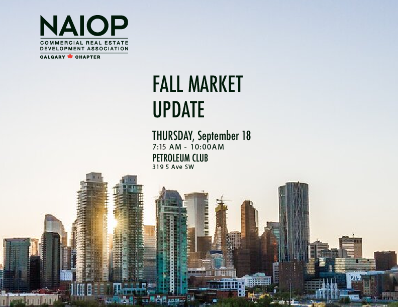 Please join us for NAIOP’s annual Fall Market Update. The event will include a Calgary market overview, followed by a panelist discussion with representatives from the downtown office, suburban office, retail, industrial, and investment sectors.